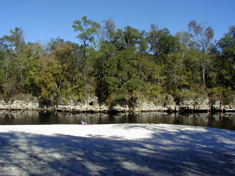 Pat, with the whole beach to herself, at the Suwannee...