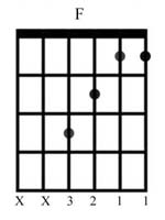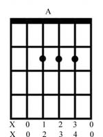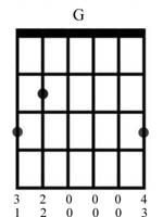 These are most of the open position chords you will ever use. The numbers under these chords are suggested fingerings. "X" means not to play that string.